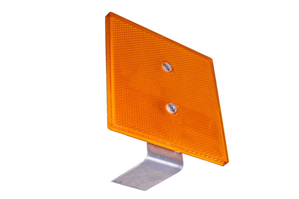 reflector, also known as delineators or reflectorized markers, are devices installed on (steel guardrail or concrete barrier) to enhance visibility and safety, especially during low-light conditions or inclement weather. These reflectors help guide drivers by reflecting light from vehicle headlights, making it easier for them to stay within their lanes and navigate curves, especially on highways and rural roads.